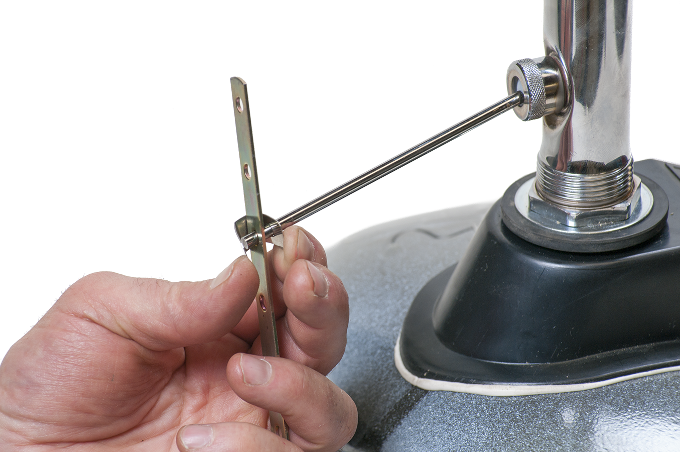 - Turn the drain plug until the pivot rod of the mechanical coupling is pointing toward the back of the basin. Tighten the locknut completely. You may use a large hexagon wrench, spud wrench, or adjustable wrench. Never use a pipe wrench to tighten the locknut because it may mark the surface of the fixture. Be careful not to overtighten, as this can chip or break the fixture.
