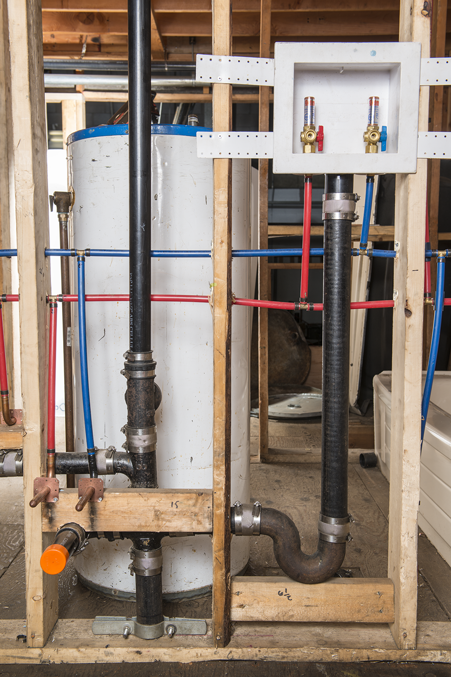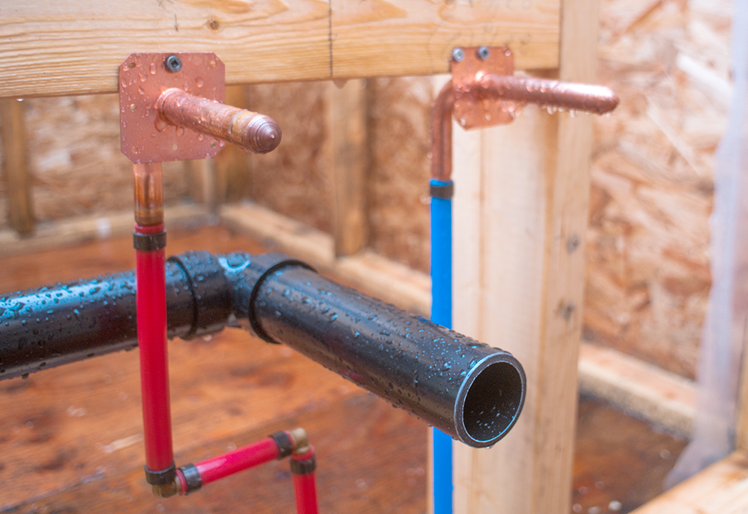 A plumber may have to drill holes, notch, or cut into studs and joists in order to make connections to supply lines or drainage, waste, and vent lines. At times, access holes may have to be cut through firewalls or fire separations to allow supply or drainage piping to pass through. When a rough-in for fixture installation affects a building’s structure, provincial or national building code requirements define minimum requirements. Engineered building materials state their own installation specifications.