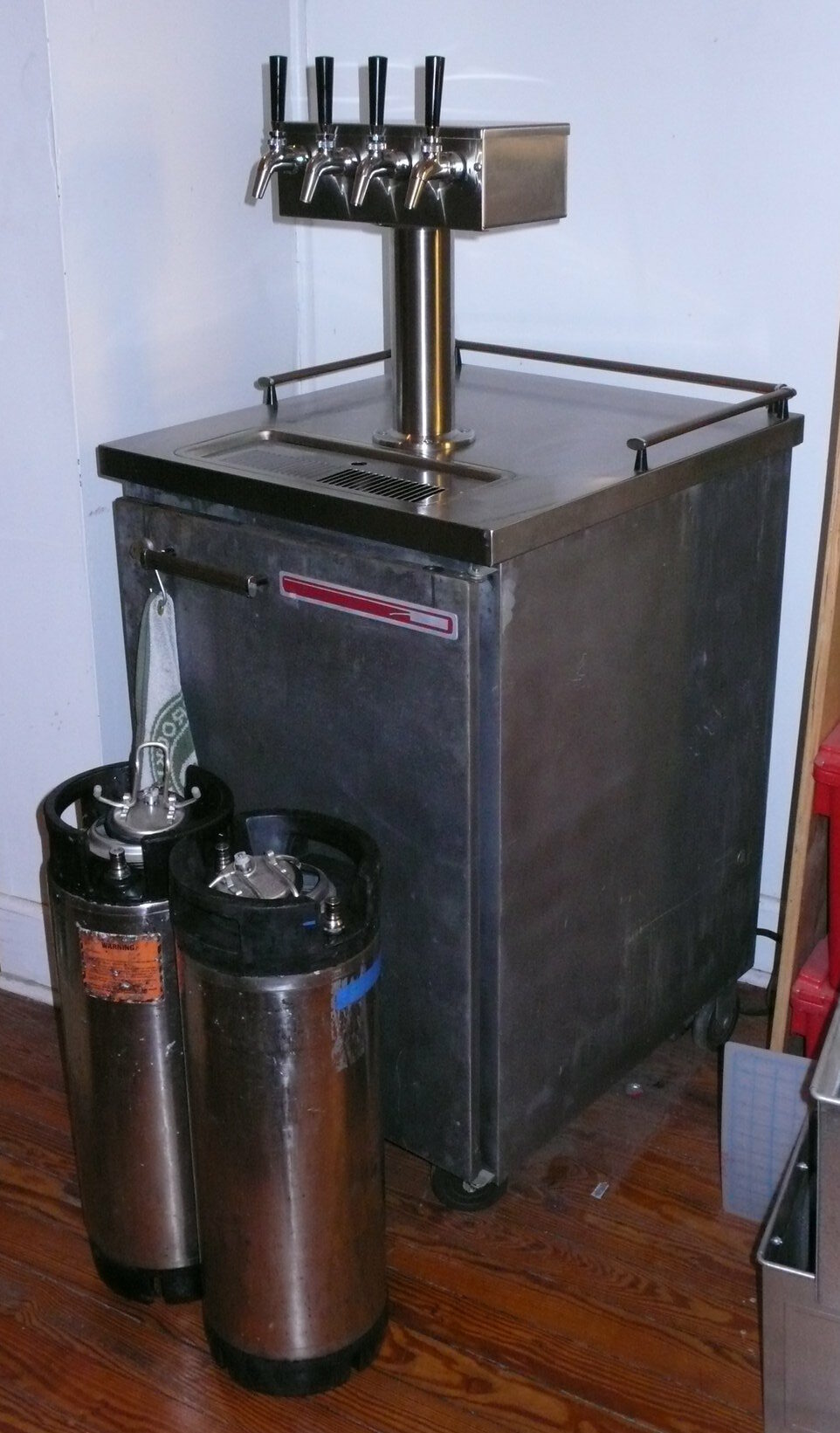 Beer cabinets are often refrigeration-equipped appliances that cool bottles or kegs of beer (Figure 9). Some require a water supply and possibly an indirect connection to a floor drain. Some beer cabinets have an integrated glass rinser that can be used to condition the glass with cold water before pouring.